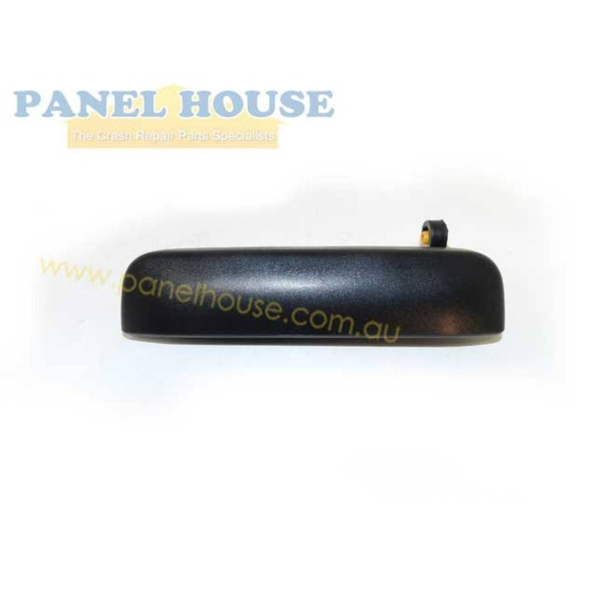 Black plastic exterior door handle. Popular replacement part for faulty handles.