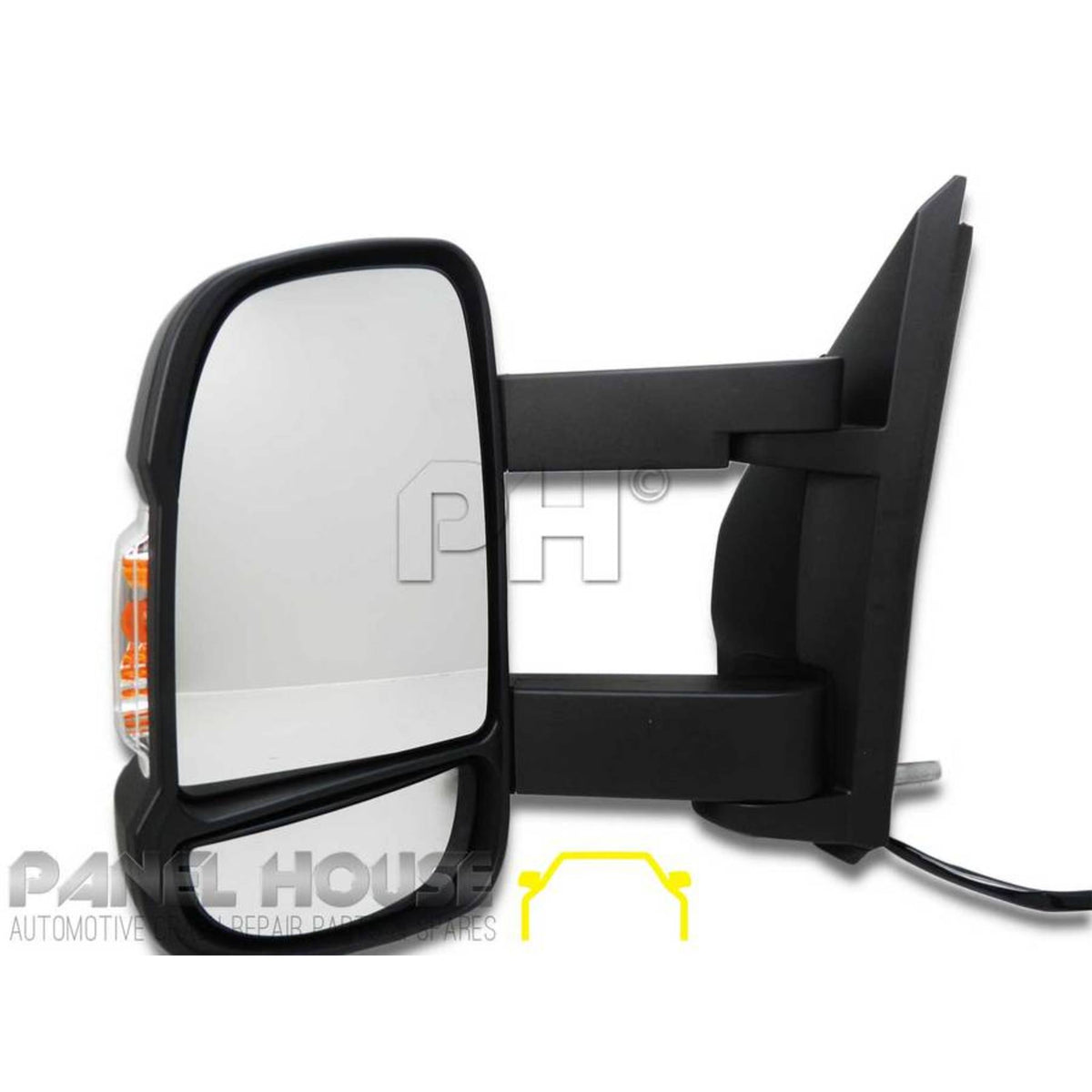 1 x Electric Long Arm Door Mirror with white/amber Indicator
