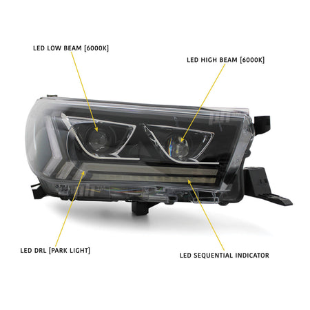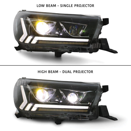 Headlights Full LED DRL Dual Projector Sequential fits Toyota Hilux N80 2015 - 2020