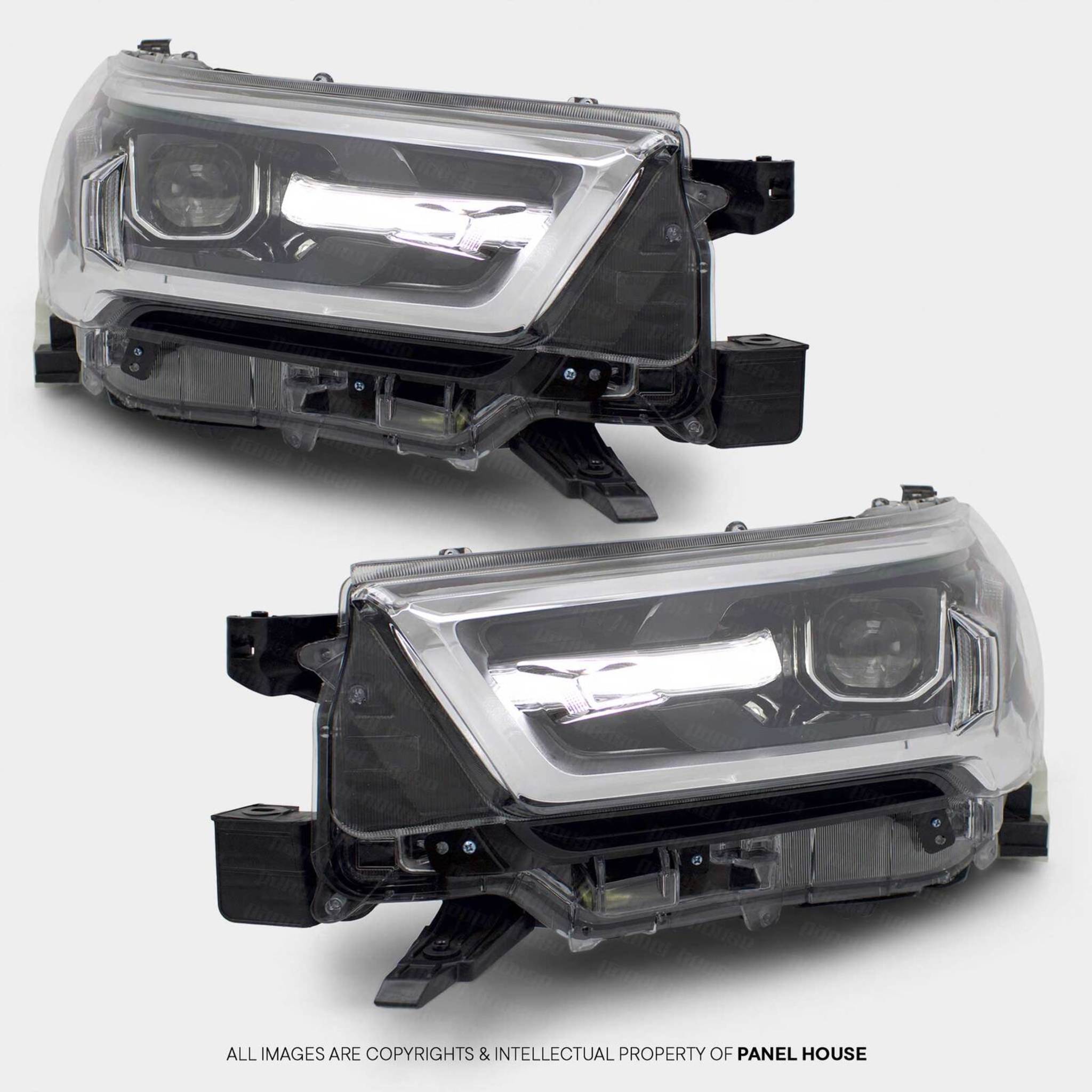 Headlights PAIR LED Black & Chrome fits Toyota Hilux N80 06/2020 - 2024