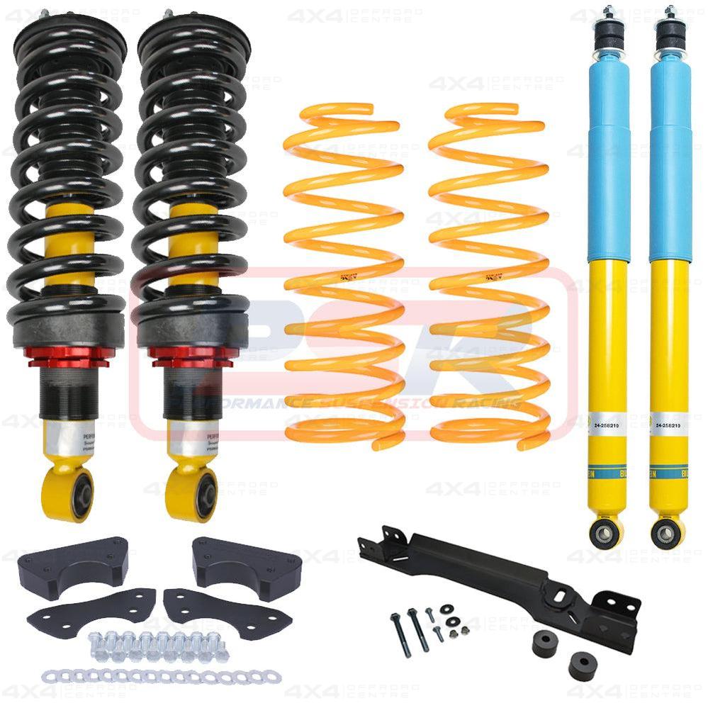 This kit contains PSR spec front struts pre-assembled with PSR front coil springs, HD strut tops and includes a Diff Drop kit, Ball Joint spacer kit, King Springs rear coils and Bilstein rear shocks.