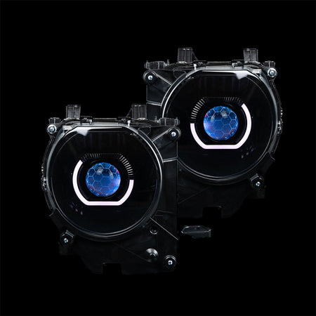 Forget the cheap alternatives; our headlights are built for quality and performance. Each set is built with our Bi-LED Projectors which features a 3.0" Blue Honeycomb Etched Lens, powered by a high-performance 60W driver, delivering a crisp 6000K white beam with up to 500m of range.