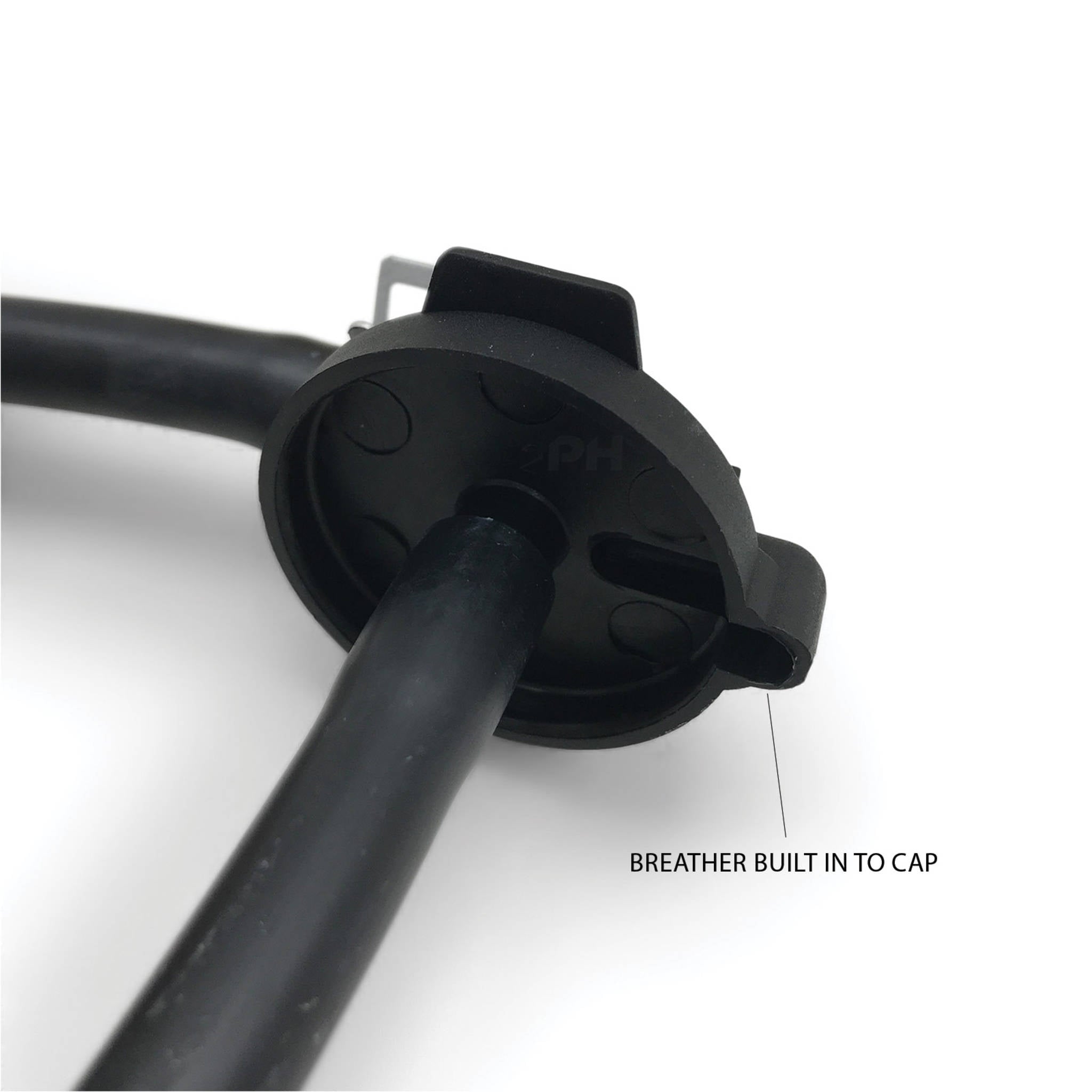 The new design of this bottle has the breather built into the cap instead of an extra hose.