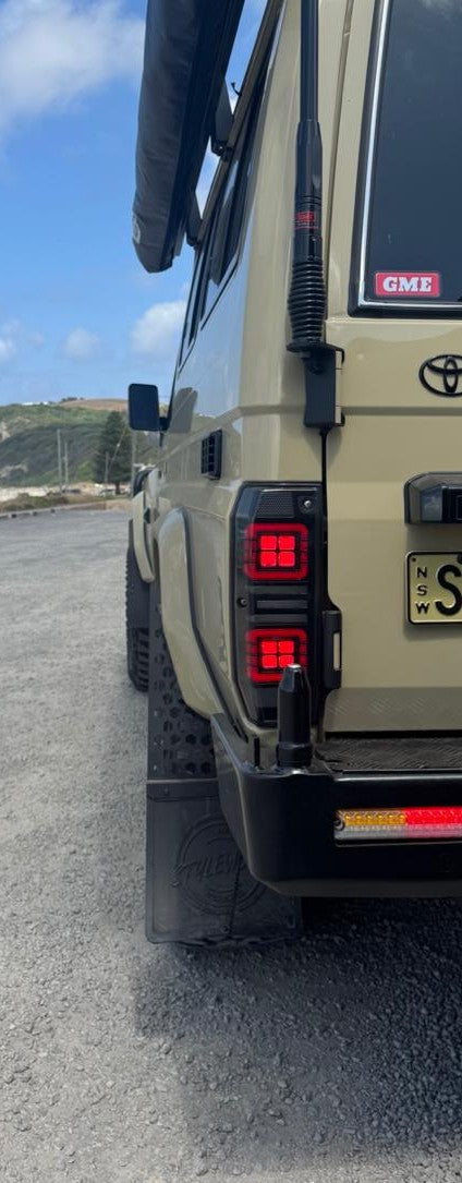 Upgrade your 71/73/78 Series LandCruiser’s rear-end with these smoked red LED tail lights ,designed for a modern, aggressive look while maintaining full ADR compliance. Engineered as a direct plug & play replacement, they offer brighter illumination, improved safety, and a sleek smoked lens finish that enhances the rugged styling of your 78 Series.