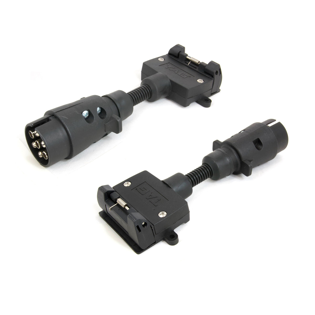 • 7 Pin Large Round Plug (Vehicle Side) to 7 Pin Flat Socket (Trailer Side)
