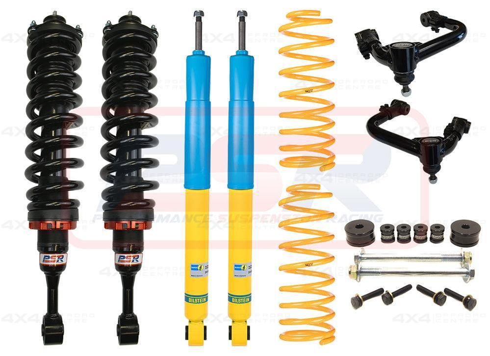 This kit contains 2 - 3" PSR TTG adjustable height front struts with PSR coil springs and HD strut tops, PSR adjustable upper control arms, spacer style diff drop, King Springs rear coils and Bilstein rear shocks.